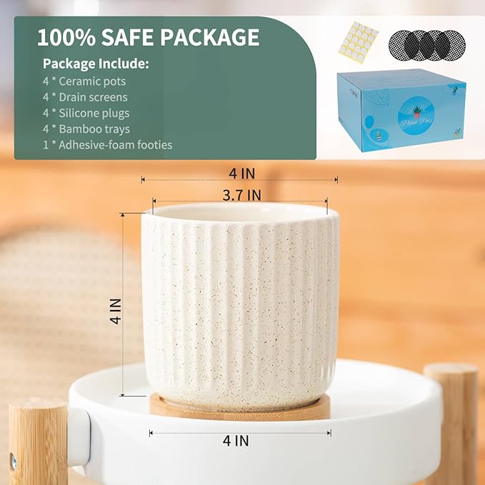 - 4 Inch Small Size - 4" diameter x 4" height is a perfect size for little plants' thrive. Great for indoor plants, snake plants, succulent plants, flowers or a few artificial plants. (NOTE: Plants NOT Included, this product may be in 0.05 inches out.)