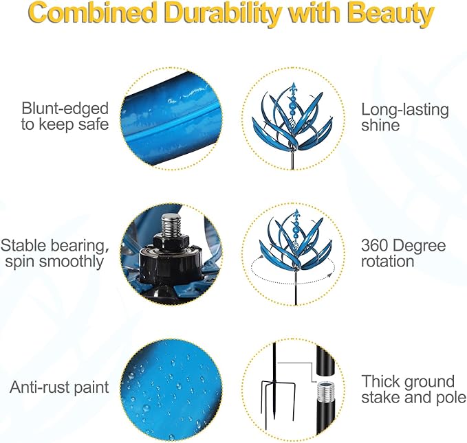 - 【Combined Durability with Beauty】LimeHill Kinetic wind spinners are crafted from sturdy material to last for seasons to come, extremely detailed and impeccable Craftsmanship.