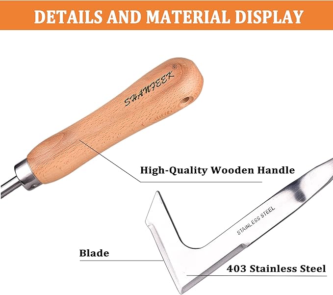 - Application:It adopts ergonomic design and the wooden handle is more comfortable. It can be used for weeding, loosening, pruning branches, harvesting crops, etc. If you are a gardener or farmer, then it must be indispensable.