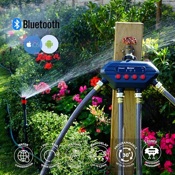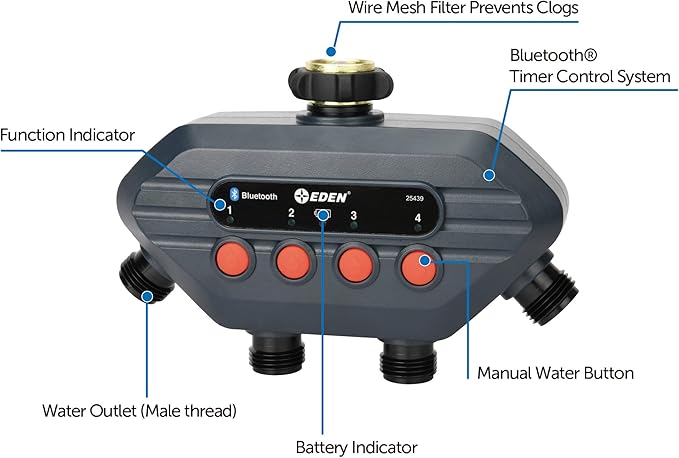 Eden 93443 4-Zone Bluetooth Water Timer |, Stainless Steel Washers Charcoal Gray