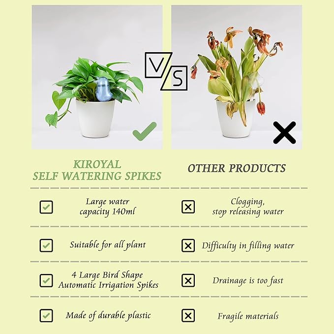 - 【Interesting shape】: KIROYAL self-watering spikes use a bird design shape, which is different from the traditional unsightly irrigation equipment. It adds ornamental value to the potted plants, and also makes children more interested in the cultivation of plants. It is the growth partner of plants.