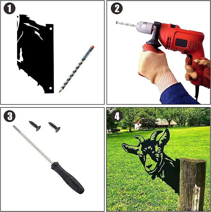 - Easy to Use--The end of these goat yard art stakes is with two srews tip,which can be easily inserted into the with a small force and not easy to loosen.