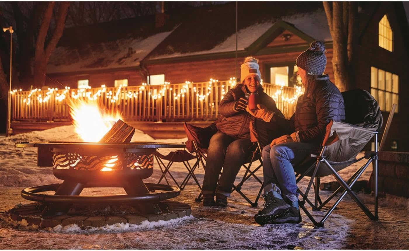 Castlecreek 47" Fire Pit BBQ Grill Outdoor Wood Burning Steel Log Firepit for Camping, Grilling, Smores, Yard, Cooking Outside, Barbecue, Bonfire Flag