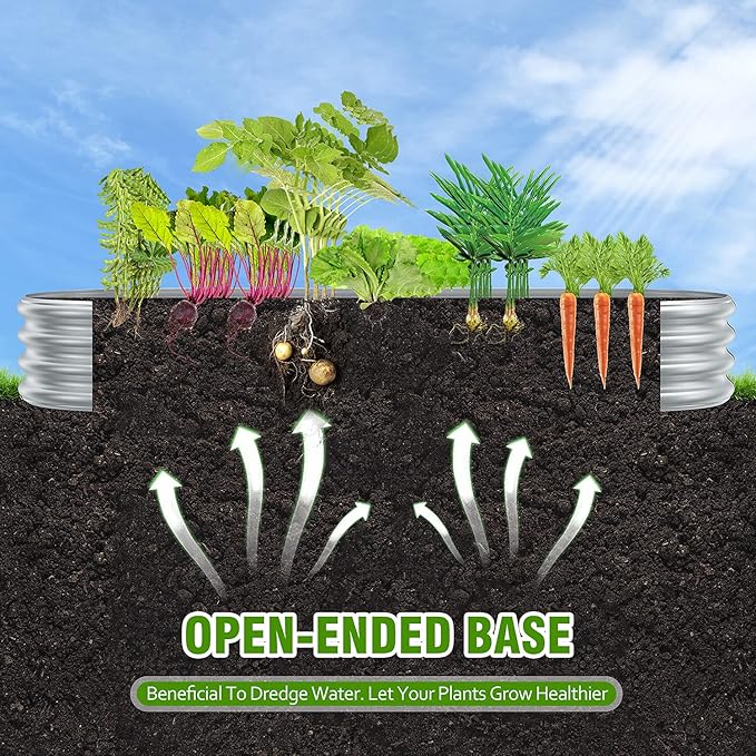 - 🍀Safe & Versatile Garden Addition - Featuring an eco-friendly coating, this metal raised garden bed is safe for the soil and plants. It’s a great addition to backyards, gardens, patios, and other outdoor spaces, providing an ideal growing environment for a variety of plants.