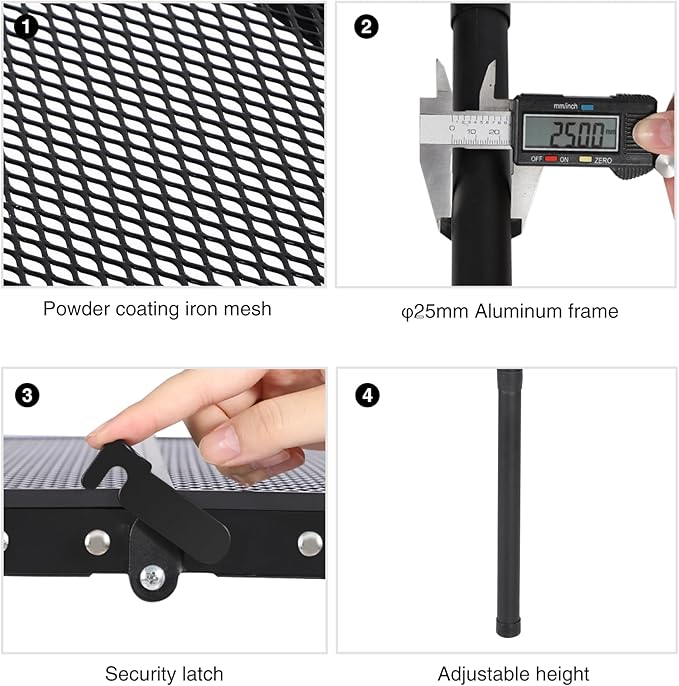 - Multifunction: Finished with premium aluminum alloy frame and thick iron mesh table top, these rectangular and square metal outdoor grill tables for camping are sturdy and stable enough. Water and heat resistant wire desktop can support your oven, grill stand, or other bbq equipment.
