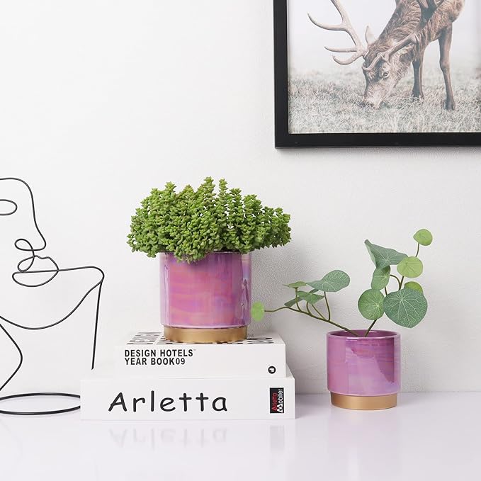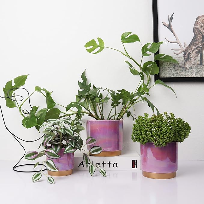 Gepege Ceramic Pots for Plants, Rainbow Pearl Glaze Planter with Drainage Hole, 6.0 inch+5.0 Inch+4.0 Inch. Indoor-Outdoor Large Round Succulent Orchid Flower Pots