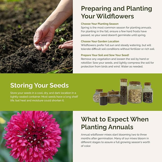 - Attracts Pollinators - With up to 6,000 square feet of ground cover, this non-GMO seed mix is sure to bring the bugs and birds to your yard! Easily attract bees, butterflies, and hummingbirds to pollinate blooms.
