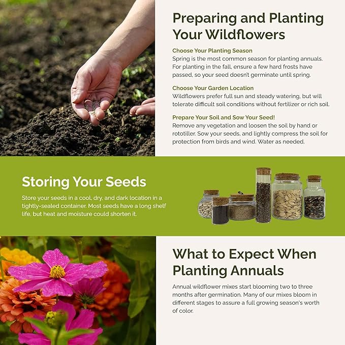 - Attracts Pollinators - With up to 6,000 square feet of ground cover, this non-GMO seed mix is sure to bring the bugs and birds to your yard! Easily attract bees, butterflies, and hummingbirds to pollinate blooms.