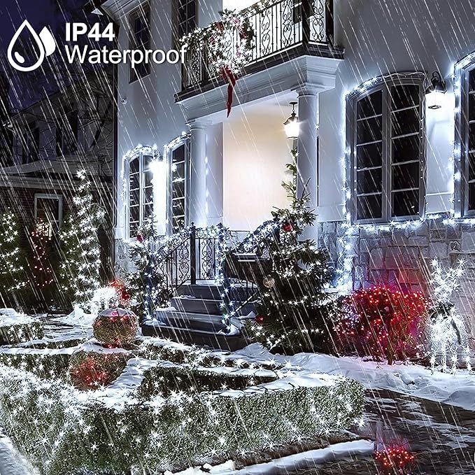 - 500 LED Christmas Decorations Lights: 29V low voltage special White String lights, 164 FT extreme long outdoor string light enable you a large decorate space. This Christmas led lights could bring people a happy festive ambiance during the days off.