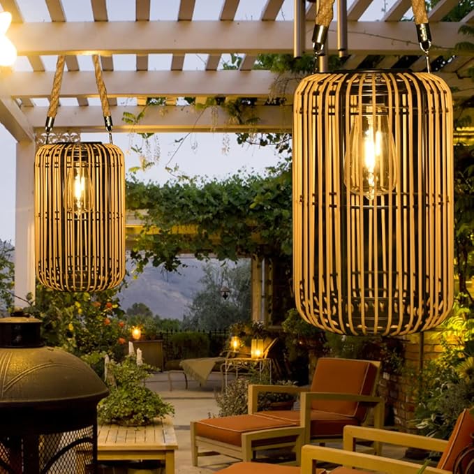 Solar Lantern Outdoor Waterproof, Large Solar Rattan Lantern Outdoor Hanging with Handle, Bright Solar Outdoor Lights with Edison Bulb for Garden Patio Yard Tabletop Decoration