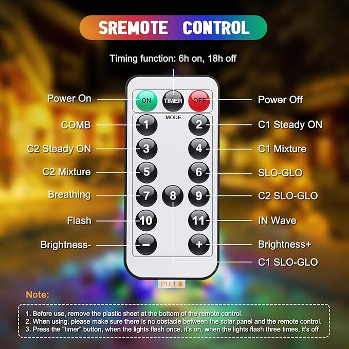 - Color Changing Solar Christmas Lights: Includes 2 packs of warm white and multi-colored solar Christmas lights with 11 lighting modes for indoor/outdoor use