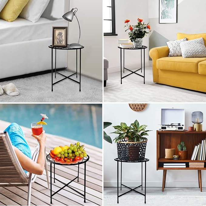 - 【🌸Perfect SIZE】This metal tall plant stand made of is fold-able design and easy to assemble. Only simply stand it up and insert the top in the four notch. It unfolded size is 15" * 10" * 10", with just enough height for a bit of drape from your plant's vines to spill over the sides, creating plenty of room for a variety of houseplants to sit in.