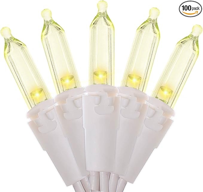 - 【Mini LED Christmas Lights Specification】: This white wire christmas string lights includes 100 count warm white led lights, total length 35.3ft, lights length 33ft and each led is 4 inches apart, 24 inches lead wire, 4 inches end connector (Extra 2 x replacement bulbs and 2 x fuse included)