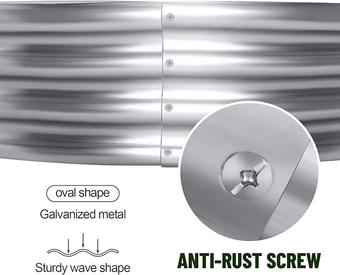 - Upgraded quality and structure: raised garden beds outdoor are made of Q195 galvanized metal sheet, double-layer anti-corrosion galvanizing and oval structure design, which is more beautiful, can withstand greater pressure at the interface, is not easy to loose, and the interface will not Deformed and can be reused for many years.
