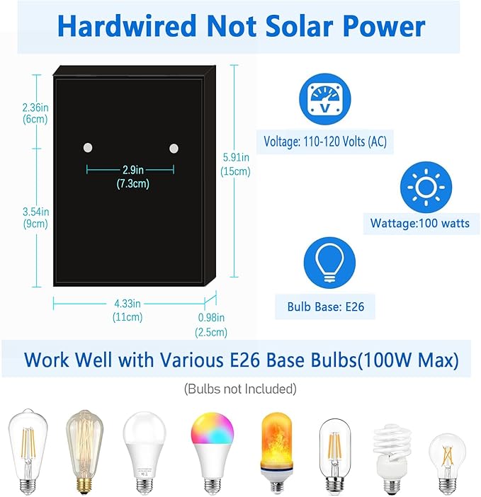 - 【Friendly Reminder】This outdoor wall lantern is powered by a 110V wired power source, not solar energy. Solar lights are easily affected by weather conditions, leading to unstable performance and potential battery damage. By using a wired power source, we ensure that the light operates with stability and durability