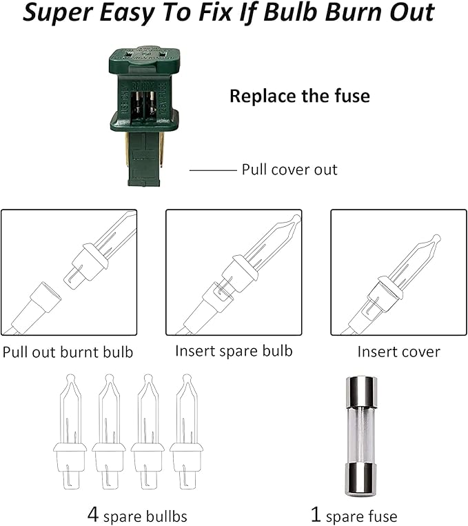 - Easy Installation: Each set of lights includes male and female plugs that can connect up to 6 sets for a total of 480 lights.