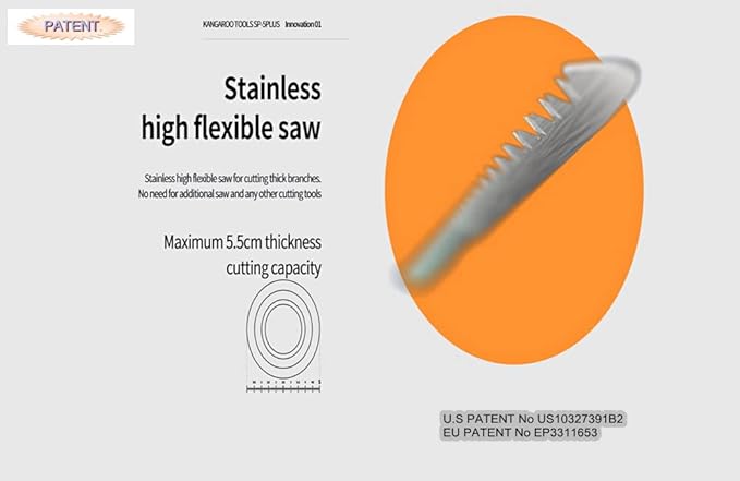 - Stainless high flexible saw for cutting thick branches. No need for additional saw and any other cutting tools Maximum 5.5cm thickness cutting capacity