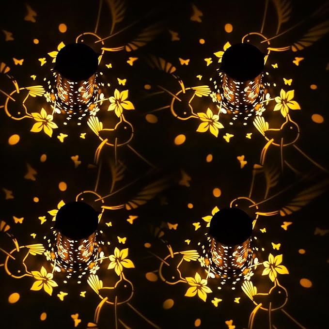 - Gorgeous & imaginative Garden Decor - Fusion the retro gold, copper of exteriors and irregular pattern inside, at darkness, the solar lantern casting a bright, warm light with Hummingbird pattern, which looks like a Hummingbird flying symbolizes change.
