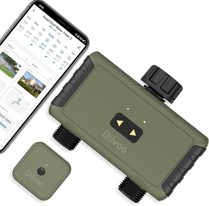 WiFi Sprinkler Timer 2 Zone, Diivoo Smart Water Timer for Garden Hose, Wireless Remote Control Irrigation System with Wi-Fi Hub, Rain Delay and Manual Watering, Leakproof for Yard Lawn Watering