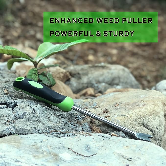 SHANFEEK Dandelion Puller with V-Shaped Shovel Gardening Hand Tools 13-Inch Weed Remover Tool for Garden Yard Weed Puller with Rubber Non-Slip Handle (Green)