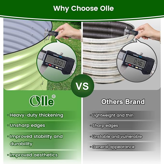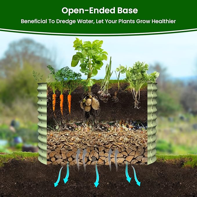 Olle 32" Tall, Raised Garden Beds Outdoor for Vegetables, Round Galvanized Raised Garden Bed, Metal Garden Boxes Outdoor Plater Box, Sage Green