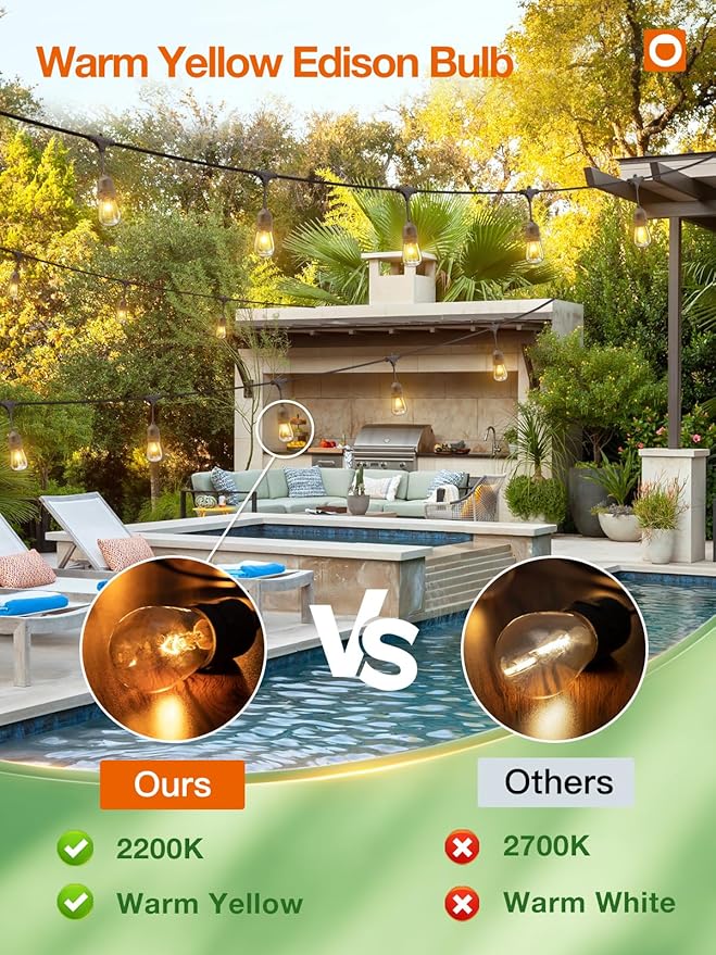 - Dimmer Compatible to Set The Right Mood: For greater mood lighting flexibility and a more soft glow, a dimmer switch(not included) to create the ideal atmosphere for a birthday party, family reunion, or wedding reception. It adds flair to bistro deck porch patio garden backyard terrace pergola cafรฉ restaurant malls for wedding BBQ party banquets, also suitable for tree-lighting