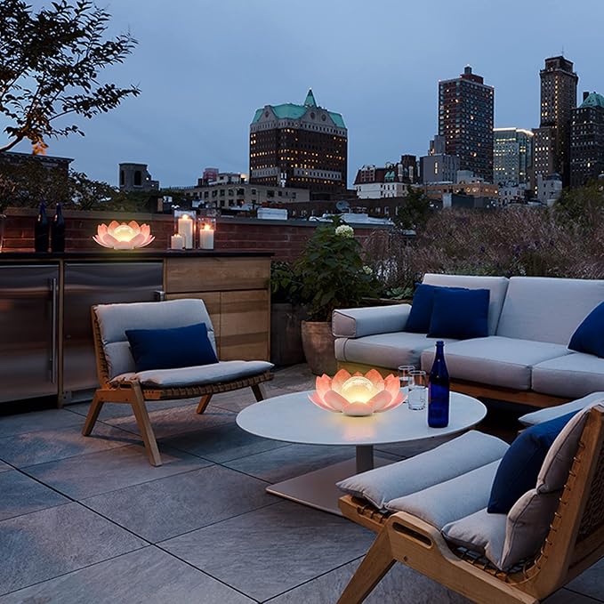 - Size: 10.63" L x 10.63" W x 4.7" H. Perfect as garden decor, lotus solar decoratives lights are suitable for the garden, patio, flowerbed, pathway, table, pond, cemetery grave decorations. The garden solar light outdoor is one of the best gifts you can give for your family and friends on Christmas, Thanksgiving, festivals, Motherโs Day and Housewarming