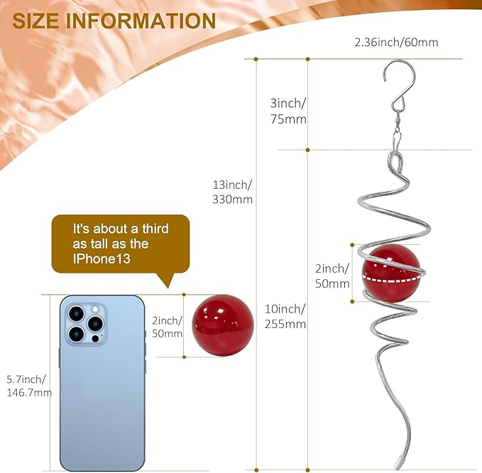 - 【 Enjoy Magic Visual Illusion 】This beautifully clever yet simple gazing ball spiral tail is designed to create a stunning optical illusion. The glass ball appears to float and dance in the air as the magic glass ball spiral tail spins, creating a magical visual illusion that has a calming and relaxing effect on the mind. The Spiral Tail Wind Spinners can reduce anxiety and improve mental focus, making it perfect for creating a relaxing atmosphere in your home, garden or yard.