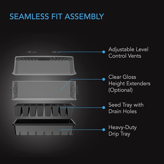 AC Infinity Humidity Dome, Germination Kit with Sturdy Drip Tray, 5x8 Cell Seedling Tray, and Vented Height Extension Panels, for Seed Starting, Propagation, Cloning Plants