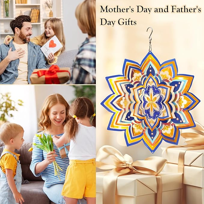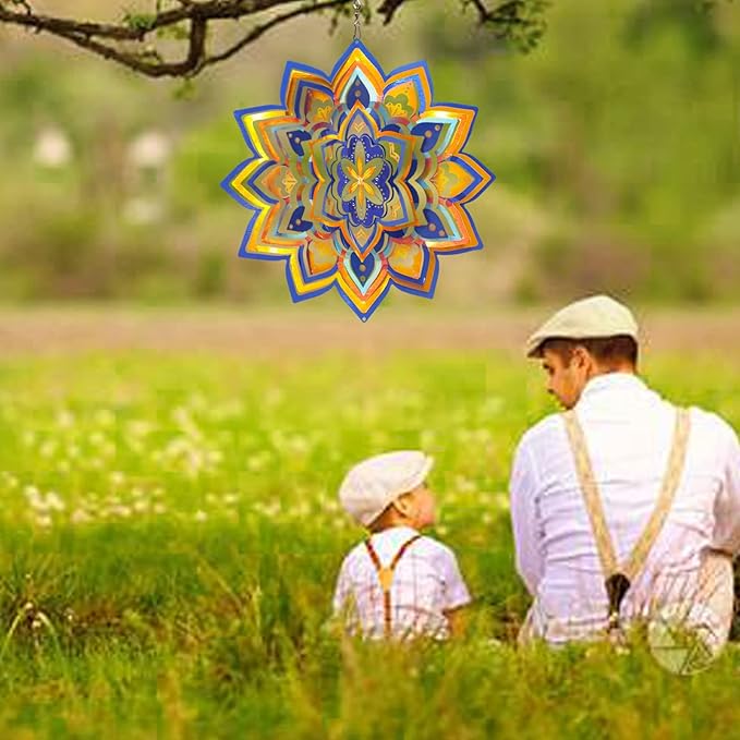 - 【 Easy to Use 3D Wind Spinner 】The outdoor wind spinner is easy to shape and spin. Its 3D design makes it easy to transform into a 3D wind sculpture. The ingenious metal construction of this mandala 3D wind spinner catches more breezes to spin. The 12" wind spinner is an eye-catching focal point.
