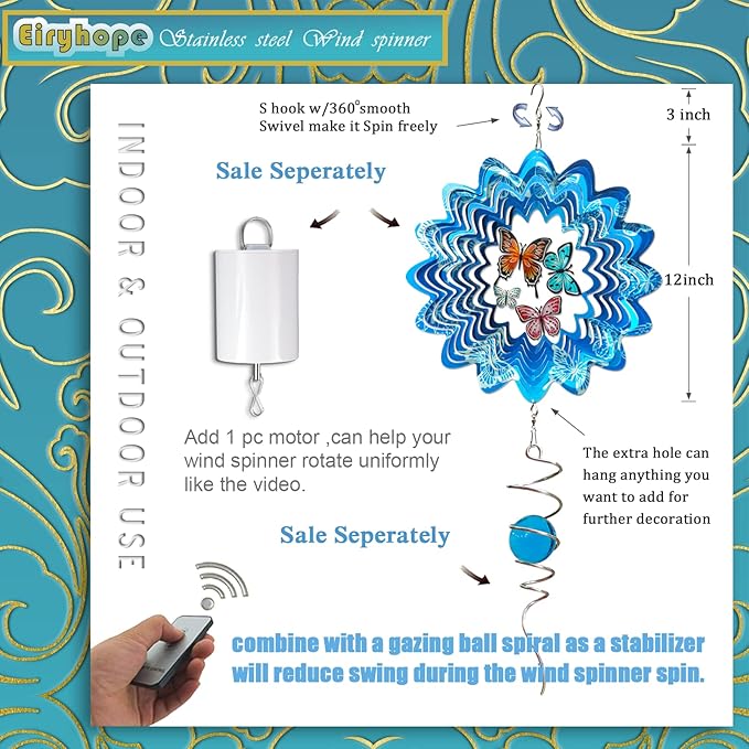 - 【 New Inspiration for Wind Spinner 】This decorative spinner is sure to inspire your decorating ideas. Butterfly wind spinners can also be used as hanging wall ornament. And you can find new uses for butterfly spinners, such as a unique holiday decoration to add to the holiday spirit and attract attention