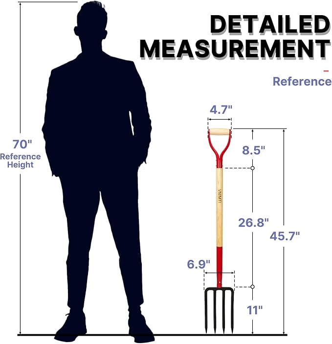 - 4. The pitch fork for mulching has an overall length of 45 inches and a weight of 4.5 lbs. It can be easily used by womenand elderly, Can be used as potato fork, pitch fork for gardening,pitch forks for barns, bedding fork,gardening fork etc.