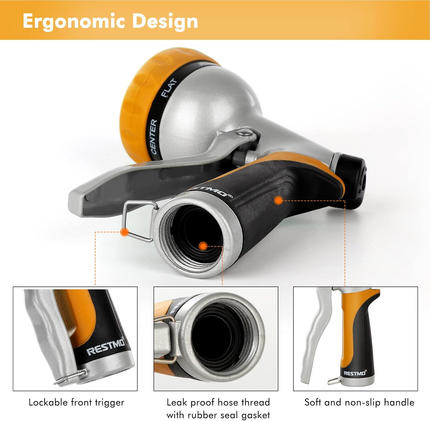 - ERGONOMIC DESIGN: Coated with the soft TPU and non-slip grip, this low-profile hose nozzle adds comfort and avoids hand fatigue. The pistol grip front trigger is easy to hold and can be locked anytime.