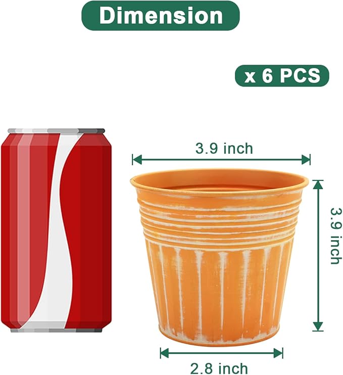 - 【Size of Metal Pots】There are 6pcs metal planters in a package, Topper opening diameter 3.9 inch, bottom diameter 2.8 inch, barrel high 3.9 inch.