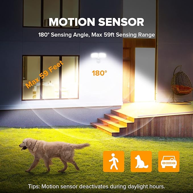 - 【METAL AND ROTATABLE DESIGN】Adjustable heads provide a customizable coverage area. Aluminum material, IP65 waterproof and 50,000hrs lifespan, make this security light pecfect for the porch, back yard, front door, garage, driveway, walkway, step, etc.