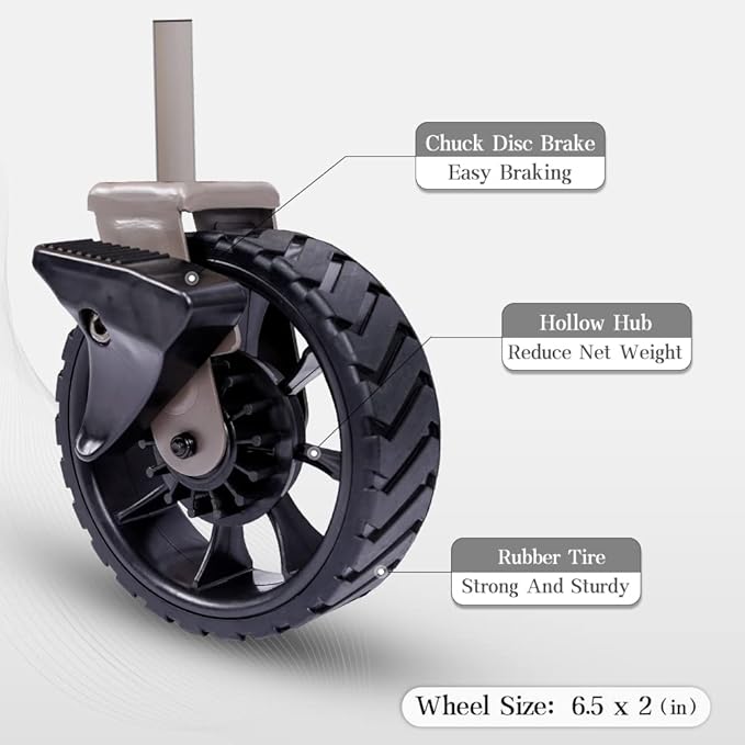 - Two Brakes & Built-in Dual Bearings: Featuring silent, 360° rotating front wheels; Dual-bearing design The double bearing design makes smooth rolling on mud, grass, and sand; two brakes allow the wagon to stop smoothly on slopes