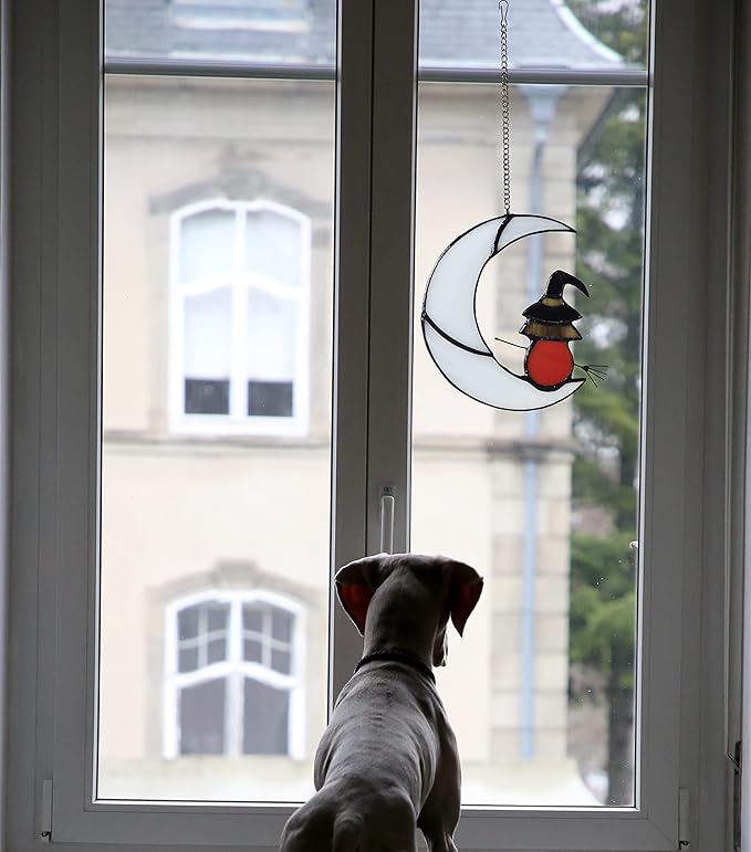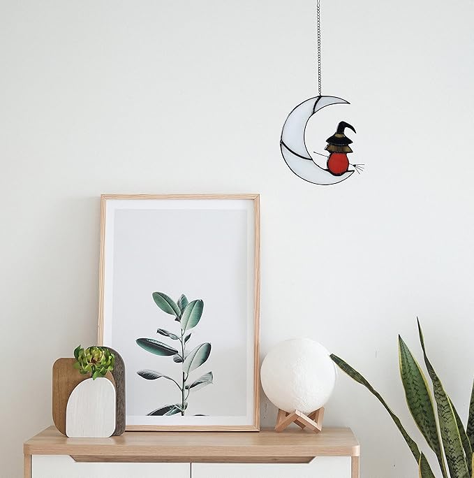 - 【Material】The cute Moon witch suncatcher has been produced with stained glass.