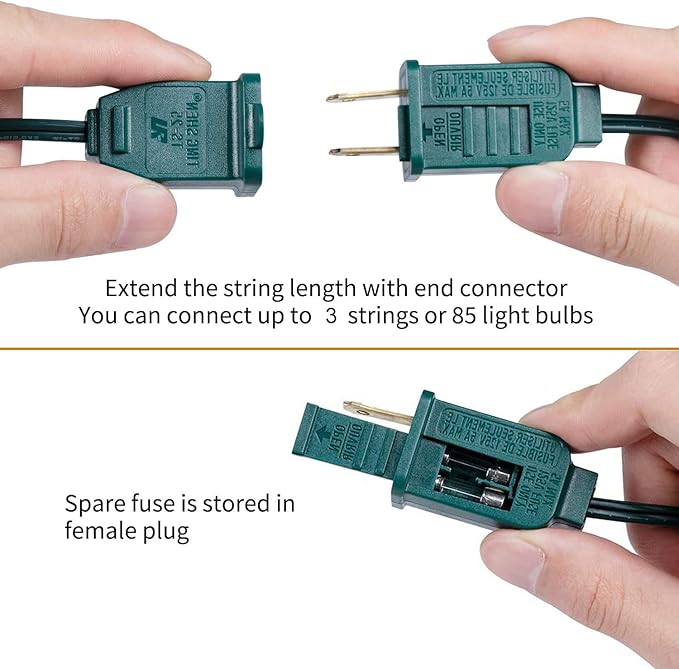 - [End to End Connectable] 6" spacing from male plug to the first bulb, 12" spacing between bulbs, 6" spacing from last bulb to tail female connector. Each 25 foot string light provides end-to-end connections. Connect up to 3 Sets. Total length 25 feet vintage christmas lights.