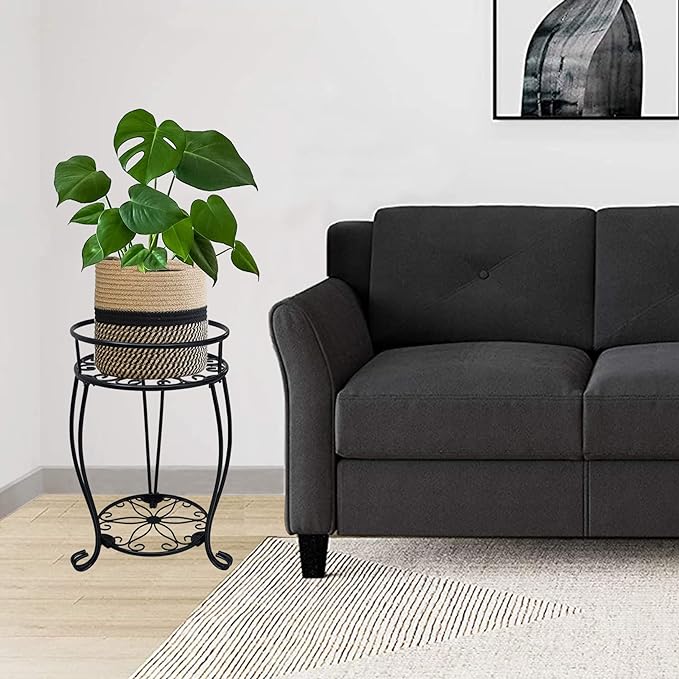 - CLASSIC FLOWER PATTERN – This 2 tier plant stand conformation is classic flowers pattern, cute and beatiful flower pot stand is a decoration itself, could blend well with your furniture style, improve the decor of your living room, bedroom, garden, office, balcony and more. You can also put some kitchen or bathroom supplies.