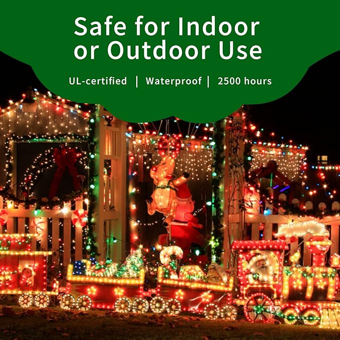 - 【Steady On/Twinkle & Safety Use】:The light set can be steady on/Twinkle(Use the Flasher Bulbs included),and easy to fix and replace with spare extra bulbs and fuses when one of the bulbs burn out or break.Thicker green wire with strong insulated copper core, tangle-free to use.High quality UL certified products ensure the safety to you and your family.