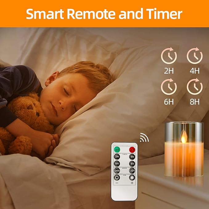 - Flameless Candles: JOSU glass flameless candles have all the advantages of traditional candles while having peace of mind to not worry about fire and still enjoy the flickering beauty of candlelight. No flame pillar candles, no real fire, and no smoke, they are friendly to the elderly, kids, and pets. Without worrying about blowing out the candles before bed cause battery operated candles come with a remote and timer, solving the safety concern while leaving them unattended.