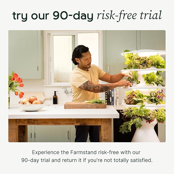 - 36 SEEDLING CREDITS: This starter kit includes a unique QR code on your Farmstand packing slip with instructions to redeem 36 seedlings from our website. Your special seedling bundle includes the best veggies, leafy greens, herbs, fruits and lettuce of the season. These pesticide free, non-GMO, pre-grown plants will have you harvesting 3 weeks early and help ensure your success. Seedlings not shippable to U.S. outlying territories.