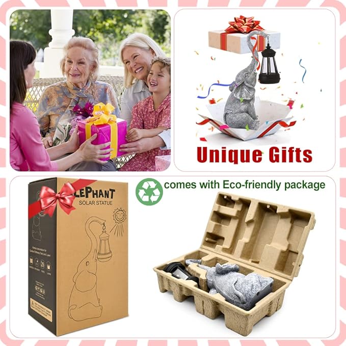 - 【Weather-Resistant Design】: Whether it's rain or shine, this IP44 waterproof elephant statue and solar lantern can withstand any weather or environment, making it the perfect addition to your outdoor decor for pathways, flowerbeds, and more