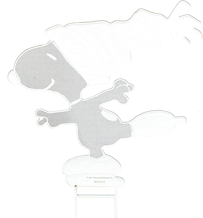 - Designed of hammered metal with glitter accents, the Peanuts Yard Art will look great day and night! Add a spotlight (not included) to light the Peanuts Yard Art at night.