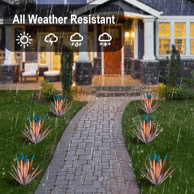 Large Tequila Rustic Sculpture, Rustic Metal Agave Plants for Outdoor Patio Yard, Home Decor Hand Painted Metal Agave Garden Yard Statue, Outdoor Lawn Ornaments (2 Big 1 Small)