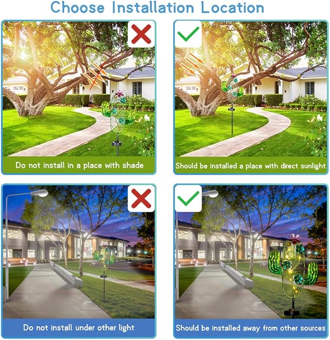 - High Quality Material: Solar garden decorative lights made of sturdy durable metal. And with the waterproof rating of IP65, no worries about rain, snow, frost, which is very strong and durable, and will not be affected even in rainy and snowy days. Perfect for patios, yards, lawns and sidewalks decor.