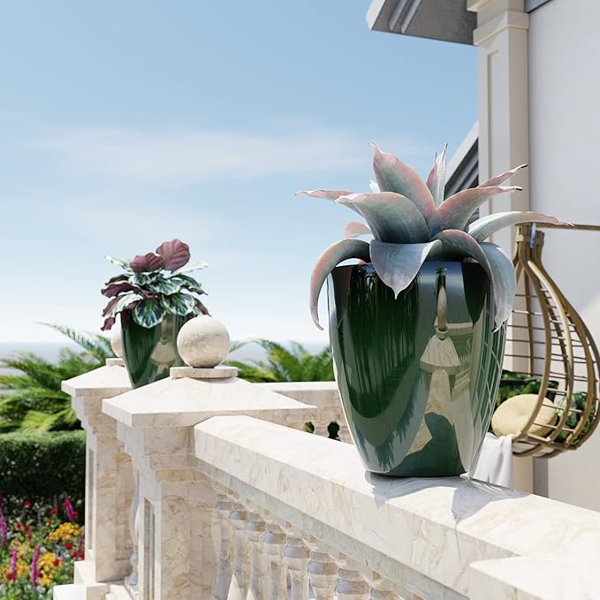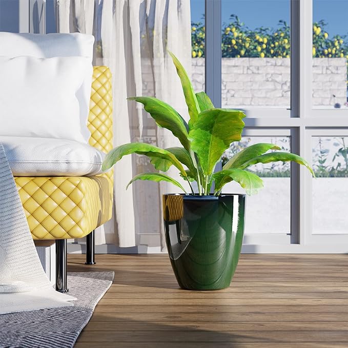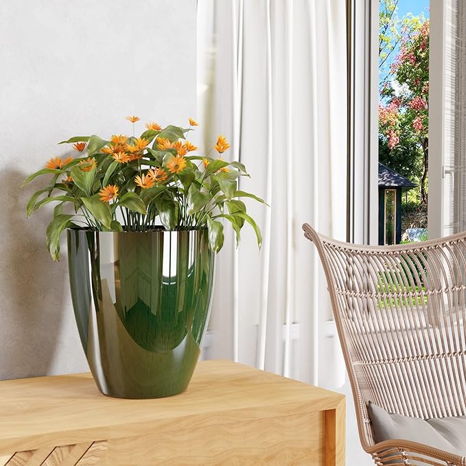 QCQHDU Plant Pots Set of 2 Pack,10 Inch Plant Pot for Indoor and Outdoor Plants with Drainage Hole,Flower Pots Modern Decorative Planter for Garden Plants (Green)