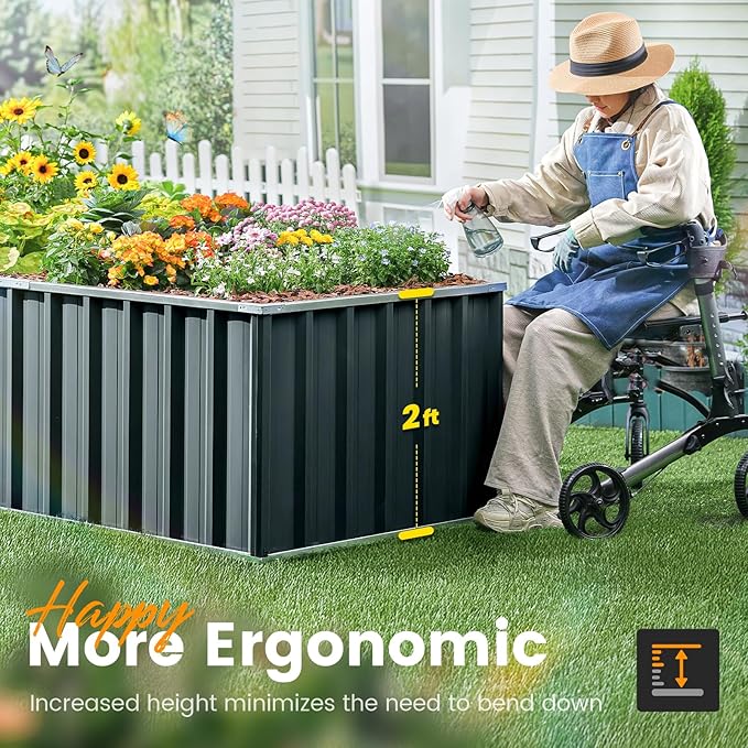 - Stable and Solid Construction: Double card frames on the two sides of the sheet make the raised garden kits more durable and stable, and 4 reinforcing rods make the whole raised garden bed more stable. Never worry about its distortion or collapse and it presents a much more beautiful design.