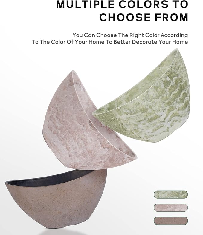 - 【Unique Design】 Unlike other plant pots, it is oval-shaped and has a unique appearance design like a gold ingot, even without plants it can still decorate your home.These planters are the perfect decoration for home living room, bedroom, front porch, balcony, desk, patio, office and garden, etc.(Note: There may be slight color differences)