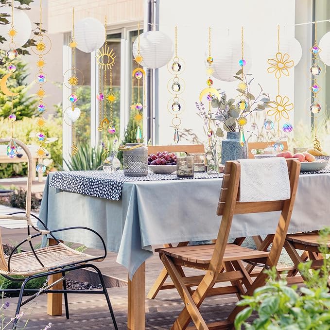 - Beautiful Appearance: these crystal window sun catchers are colorful, look beautiful and elegant, combining well with the sun, moon, star and other elements. Meanwhile, they are able to reflect charming light in the sunlight, to add a touch of color and bring a dreamy visual effect